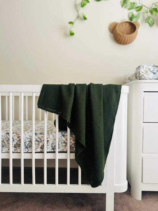 Mini & Me Cable Baby Blanket Forest Green