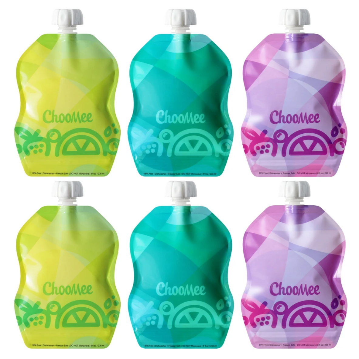 ChooMee - SnakPack Reusable Food Pouch - 6 Pack - Various Colours/Patterns