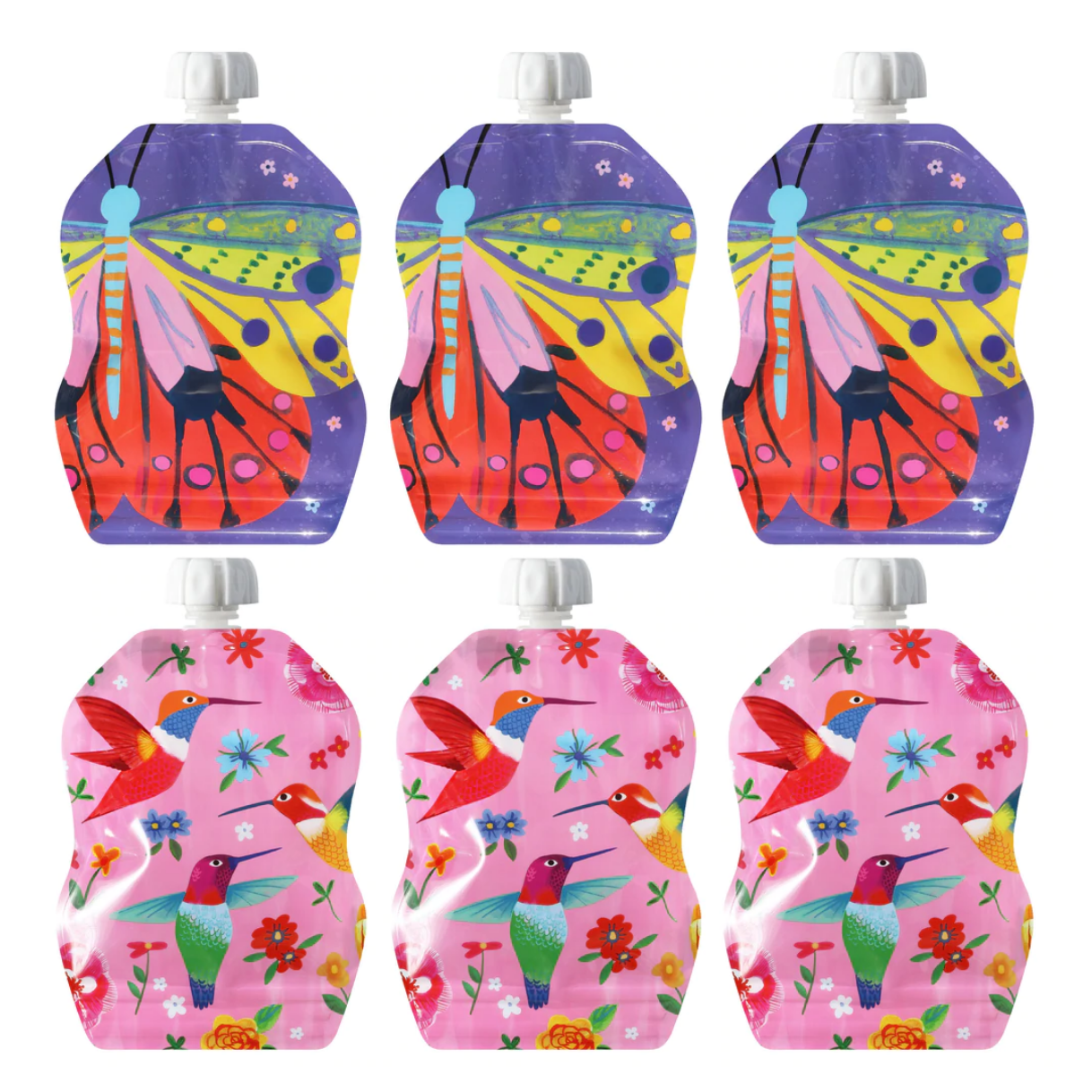 Fresh flavors are taking flight with our new FlutterBug pouch set! Inspired by our love for nature and all beautiful critters that surround us, we capture colorful illustrations by artist, Emma Jayne! We are so excited to share this collaboration as we bring her original brushstrokes to inspire children around the world.