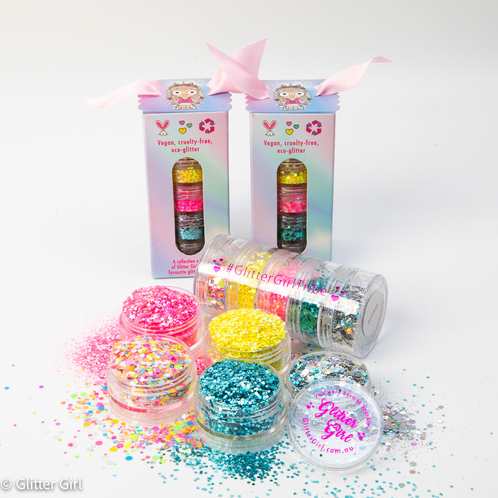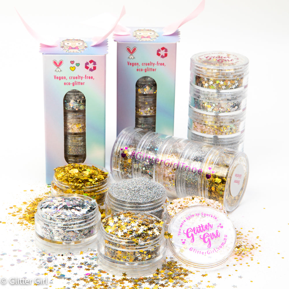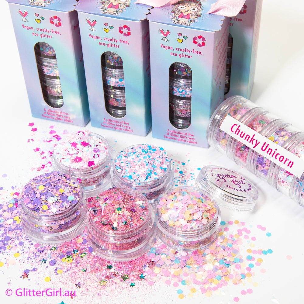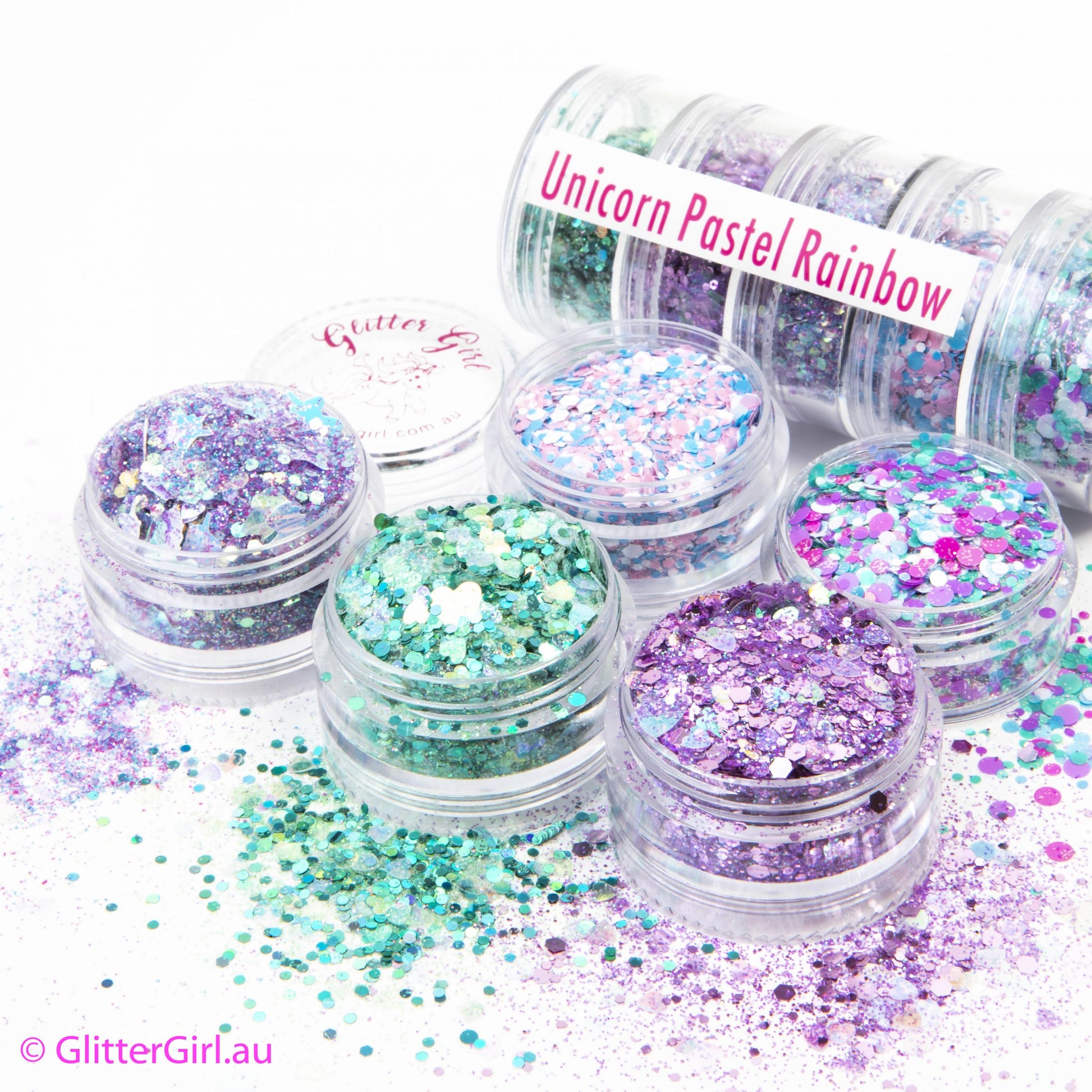 To apply, simply use our Glitter Girl Unicorn Glitter Makeup Brush set or Silicone Brushes to add your beautiful Sparkle to the your face, body or the roots of your hair.