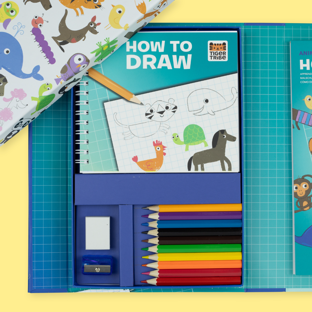 - All-in-one activity set teaching kids how to draw animals