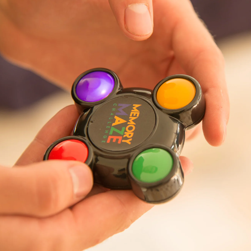 This memory maze game is small enough to fit into your pocket, which allows for fun memory testing on-the-go! It's a fun game for killing time during a long commute or just challenging friends for fun. The sequences change every time you play (so there's no cheating) and you have to complete 15 steps to beat the game (extremely hard!) It comes with batteries included so you can play straight away and believe us when we say it's really addictive!