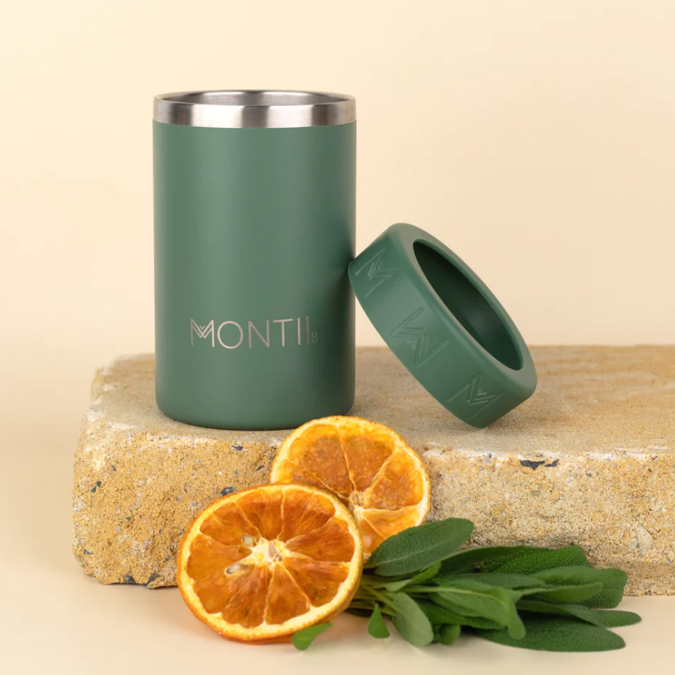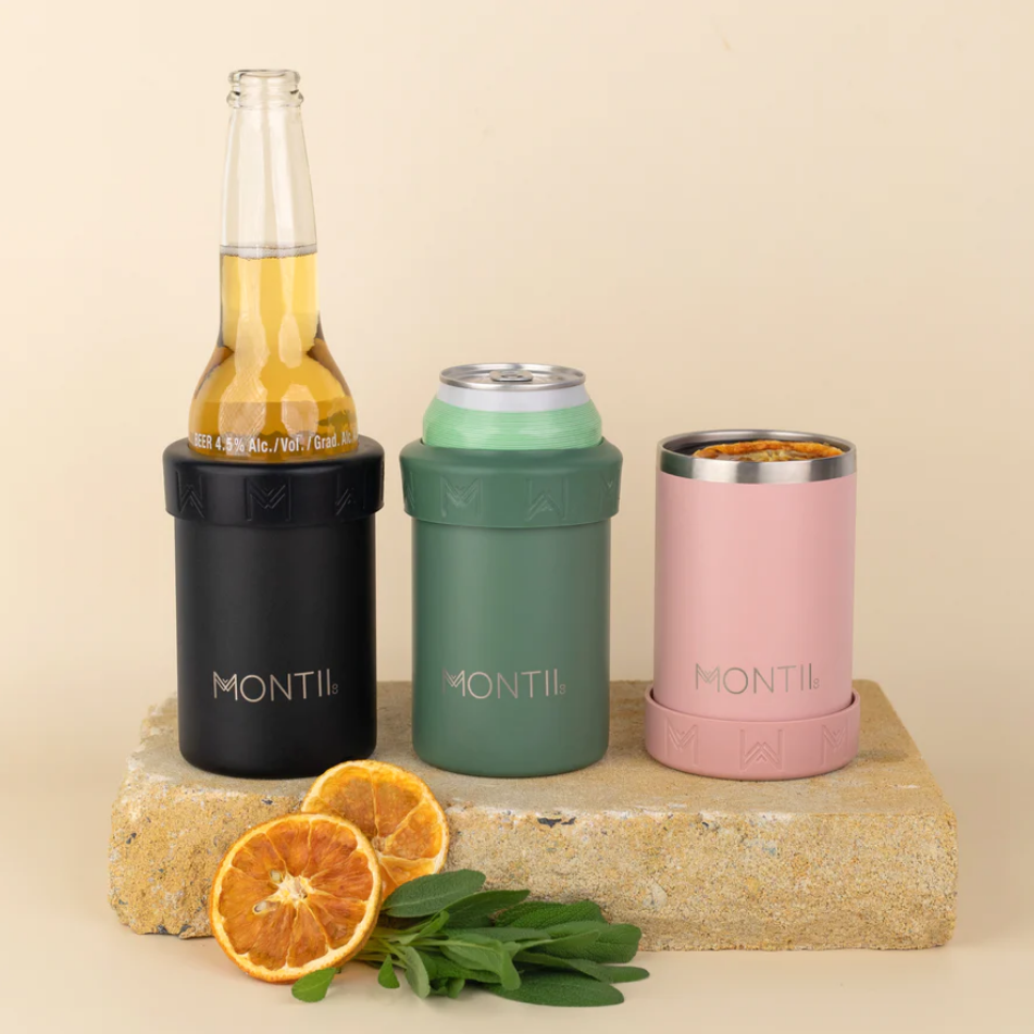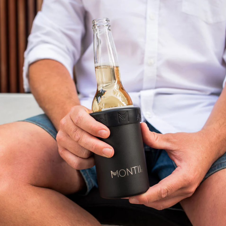 The MontiiCo Can & Bottle Coolers are made from Stainless Steel (18/8 and 304). The lid is made from Silicone.