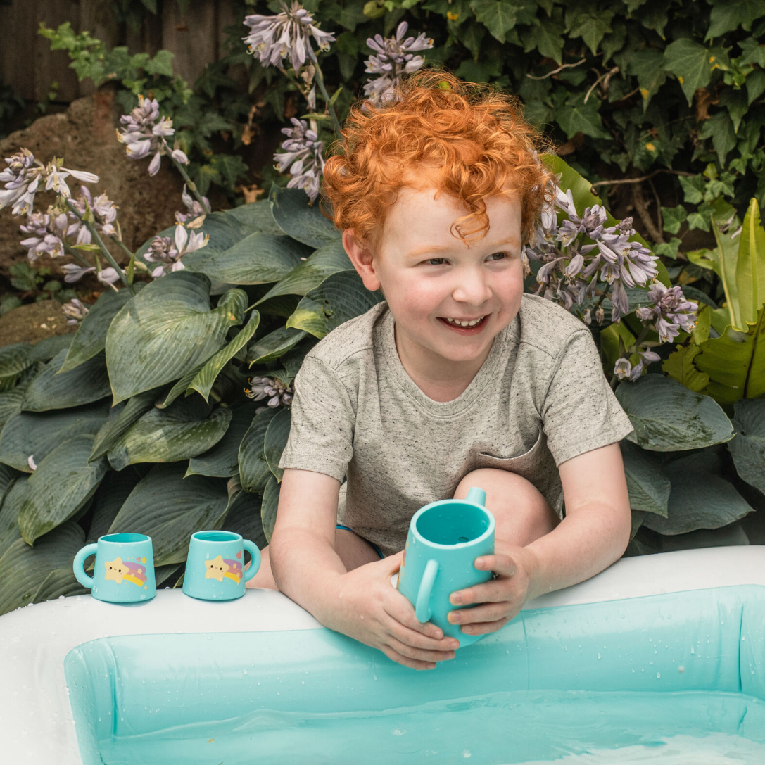 Tea parties just got sweeter with this gorgeous Starlight Party Silicone Tea Set. This versatile, classic tea set is made of kid-friendly, food-grade silicone that’s perfect for playtime. Great for pretend picnics, tea parties, messy sensory play in the outdoor mud kitchen or for creating bubble-chinos in the tub at bath time.