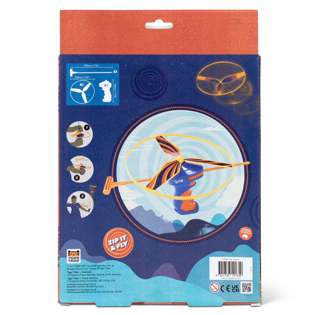 With a pull on the easy-to-grip, zippy launcher, kids will delight in watching the soaring propellers of Zip Copter take flight!